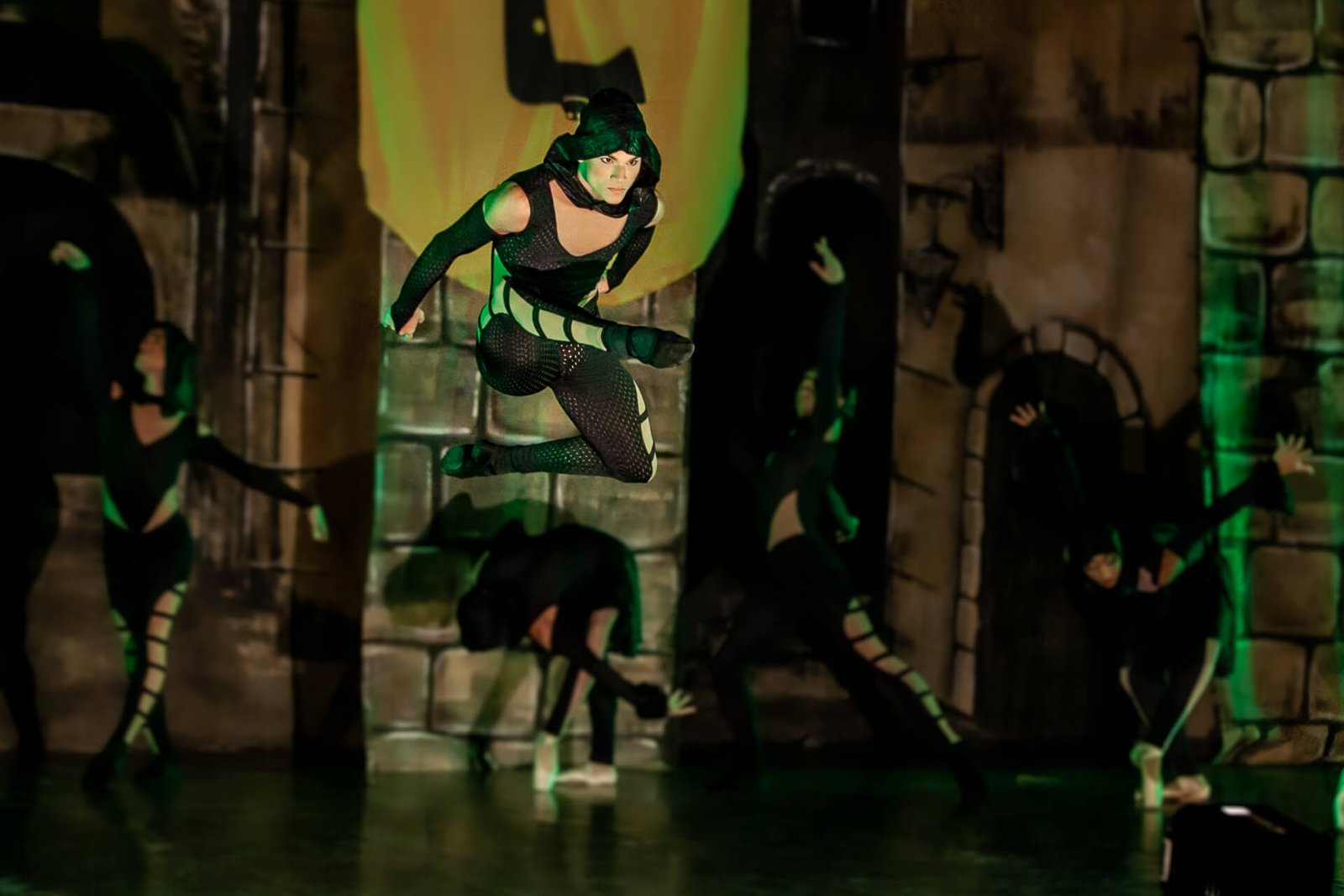 Os dançarinos, sejam eles homens ou mulheres, podem atravessar o palco dando saltos, girando e tendo quedas programadas.